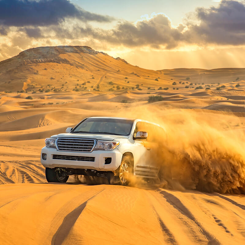 Desayuno. Mañana libre. Sobre las 15.00 Hrs, seremos recogidos en el lobby del hotel en una moderna camioneta 4×4 (en regular – 6 personas por camioneta), para iniciar un emocionante Desert Safari, deteniéndonos en el desierto para tomar fotografías y observar la espectacular puesta de Sol. A continuación, llegamos a un tradicional campamento árabe, donde tendremos la oportunidad de disfrutar de actividades, como montar a camello, pintura en henna, fumar la aromática shisha (pipa de agua), shows en vivo como la danza del vientre y degustaremos la deliciosa cena de barbacoa con especialidades a la parrilla. Regreso a Dubái. Alojamiento. Excursión con conductores de habla inglesa.
