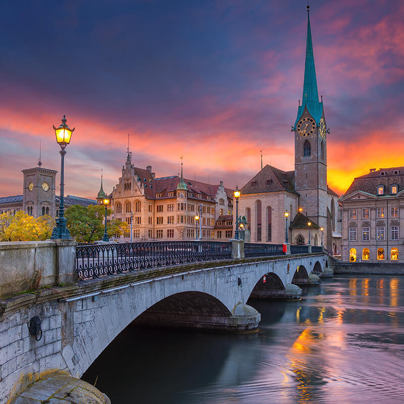 Desayuno buffet en nuestro hotel y salida hacia una de las más bellas ciudades de Alemania, Heidelberg, ciudad universitaria con un precioso casco antiguo y dominada por su castillo. Tiempo libre y continuación de nuestro viaje, bordeando la Selva Negra hacia Basilea para entrar en Suiza, y continuar a Lucerna, una de las más bellas ciudades de Suiza a orillas del lago de los Cuatro Cantones. Tiempo libre y continuación de nuestra ruta a Zúrich la capital financiera del país. Alojamiento.