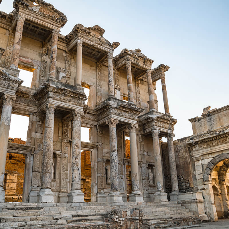 Desayuno. Por la mañana visita a Hierápolis, donde el Apóstol Felipe vino a extender el cristianismo y se cree que vivió y fue mártir aquí. Hierápolis es mencionada en la epístola de San Pablo a los Colosio. Exploraremos uno de los cementerios más ricos del mundo antiguo, la puerta principal Domitiana y la avenida principal. A continuación, visitamos el Castillo de Algodón, maravilla natural de gigantescas cascadas blancas, estalactitas y piscinas naturales formadas a lo largo de los siglos, por el paso de las aguas cargadas de sales calcáreas, procedentes de fuentes termales. Almuerzo. Salida hacia la espléndida ciudad de Éfeso. San Pablo vino a esta ciudad en el año 54 D.C. y se quedó tres años. Predicó el Gospel, ganó seguidores y también estableció la iglesia de Éfeso. Efeso es la ciudad Antigua mejor conservada de Asia Menor que durante los siglos І y ІІ tuvo una población de 250.000 habitantes y monopolizó la riqueza de Medio Oriente. Visitaremos el Templo de Adriano, los baños romanos, la biblioteca de Celso, el odeón, el Teatro, etc. También visitamos la Casa de la Virgen María, una fuerte tradición de la iglesiacatólica afirma que San Juan trajo a la VirgenMaría a Éfeso y que aquí ascendió al paraíso. Continuamos hacia Izmir. En el camino, visita a un taller de cuero. Cena y alojamiento en Kusadasi.