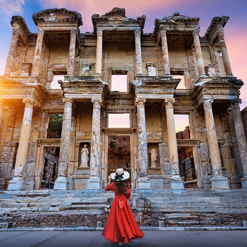 Desayuno. Por la mañana visita a Hierápolis, donde el Apóstol Felipe vino a extender el cristianismo y se cree que vivió y fue mártir aquí. Hierápolis es mencionada en la epístola de San Pablo a los Colosios (Colosios 4:13). Exploraremos uno de los cementerios más ricos del mundo antiguo, la puerta principal Domitiana y la avenida principal. A continuación, visitamos el Castillo de Algodón, maravilla natural de gigantescas cascadas blancas, estalactitas y piscinas naturales formadas a lo largo de los siglos, por el paso de las aguas cargadas de sales calcáreas, procedentes de fuentes termales. Almuerzo. Salida hacia la espléndida ciudad de Éfeso (Rev 1:11,2:1-7) (Acts 18:19-28, 19:1-41 Ephesians). San Pablo vino a esta ciudad en el año 54 D.C. y se quedó tres años. Predicó el Gospel, ganó seguidores y también estableció la iglesia de Éfeso. Efeso es la ciudad antigua mejor conservada de Asia Menor que durante los siglos І y ІІ tuvo una población de 250.000 habitantes y monopolizó la riqueza de Medio Oriente. Visitaremos el Templo de Adriano, los baños romanos, la biblioteca de Celso, el odeón, el Teatro, etc. También visitamos la Casa de la Virgen María, una fuerte tradición de la iglesia católica afirma que San Juan trajo a la Virgen María a Éfeso y que aquí ascendió al paraíso. Continuamos hacia Izmir. En el camino, visita a un taller de cuero. Cena y alojamiento en Izmir (o Kusadasi).