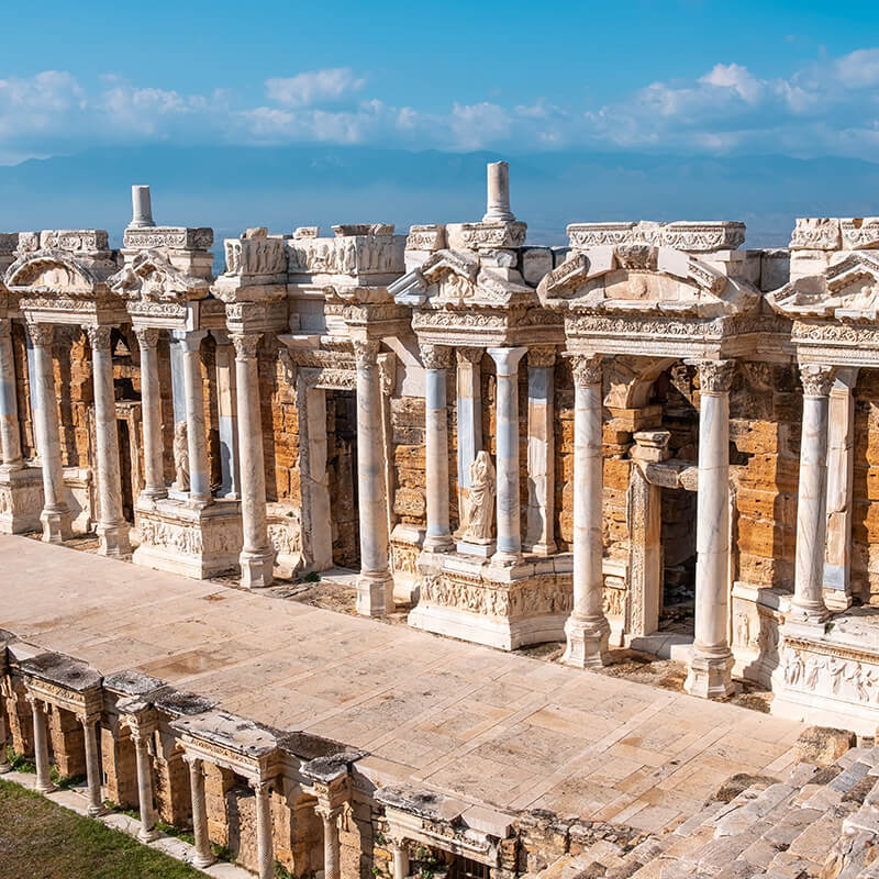 Desayuno. Salida aprox. a las 06:00h (horario a ser confirmado por el guía) hacia Pamukkale para visitar la antigua Hierápolis y el Castillo de Algodón, verdadera maravilla natural, una cascada gigante, estalactitas y piscinas naturales. El nombre «Hierápolis» se deriva del griego y significa «ciudad sagrada», refiriéndose a los numerosos templos y lugares religiosos que existían en la ciudad. Uno de los aspectos más notables de Hierápolis era su famoso teatro, que tenía una capacidad para albergar a miles de espectadores y aún se conserva en gran parte en la actualidad. La ciudad ganó reconocimiento como un destino popular de spa y curación debido a sus aguas termales naturales y piscinas calcáreas blancas. Estas aguas, cargadas de minerales, crearon terrazas y cascadas naturales impresionantes conocidas como «Pamukkale», que en turco significa «castillo de algodón». Pamukkale y Hierápolis se encuentran juntas en la lista del Patrimonio Mundial de la UNESCO debido a su importancia histórica y belleza natural. La región es conocida también por su producción de algodón, y tendremos la oportunidad de conocer productos textiles de fabricación local. Cena en el hotel. Alojamiento.